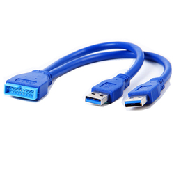 D2592 Dual 2 USB 3,0 A macho a 20 pines macho 20 pines encabezado placa base Cable de extensión Y adaptador divisor